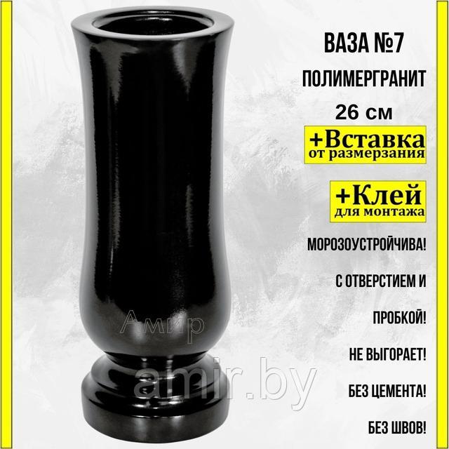 Ваза из полимергранита ритуальная на кладбище №7 черная 26см+клей. См. описание ниже!!!